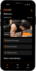If you can’t workout due to a flight, that’s ok, but we will encourage you to stick to the Challenge as best you can for all the 4 Weeks. You will have 1 Week of access to all your Workouts on the SOHFIT App after the Challenge ends. This allows you to catch up on any sessions you may have missed